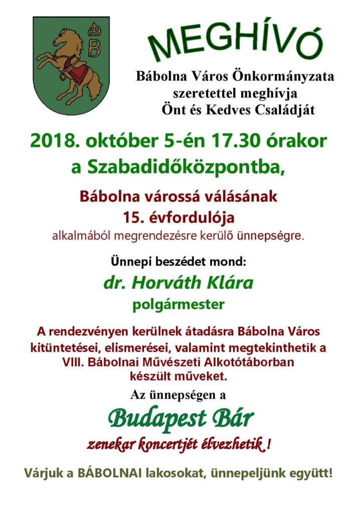 Bábolna várossá válásának 15. évfordulója